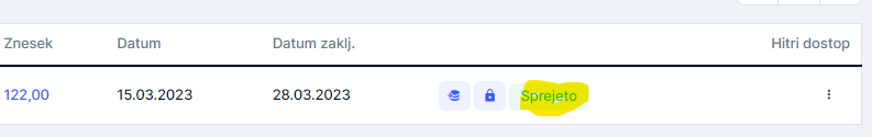8. Sedaj mora partner na drugi strani dokument (naročilo) potrditi oz. ga zavreči. Potrjeno naročilo: