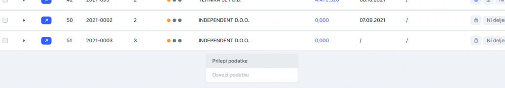 V spletnem portalu OUT se postavite na željeno vrsto dokumenta (Izdani dok.), npr. Račun in pritisnete desno miškino tipko pod dokumenti v sivem območju, prilepi podatke: