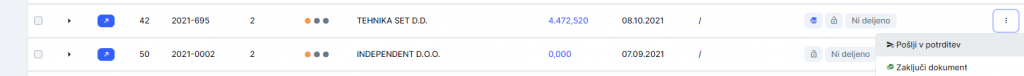 Dokument se pokaže med dokumenti, zaključite ga in pošljete v potrditev:
