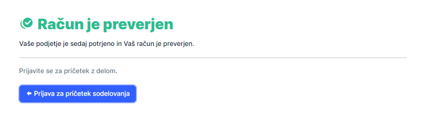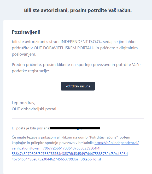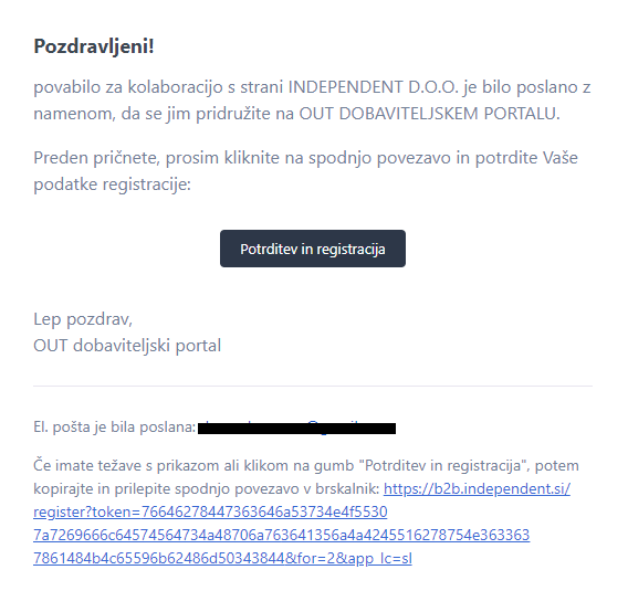 - Partner prejme na elektronsko pošto zahtevek za registracijo: