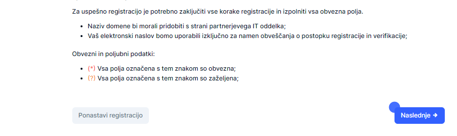 Pritisnte “Potrditev in registracija” v novem zahivku brskalnika se odpre čarovnik za registracijo: