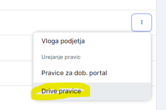 To storite na način, da na desni strani ob partnerju pritisnete tri pikice in izberete opcijo Pravice za dop. portal: